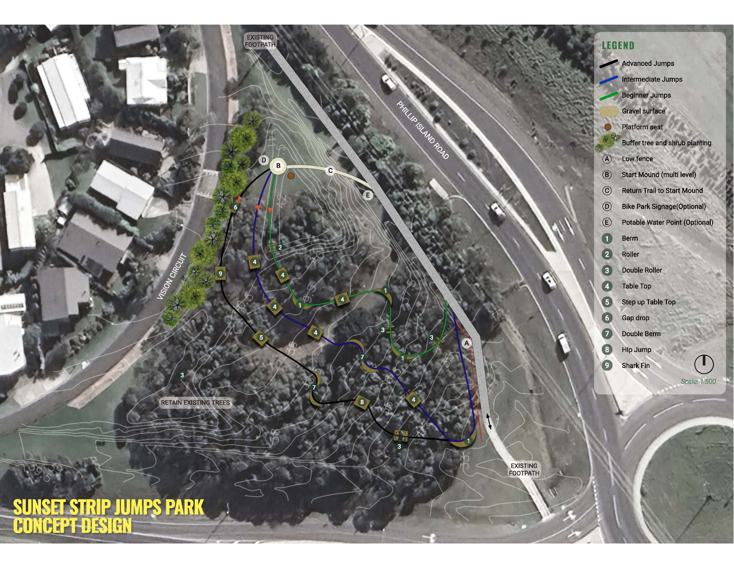 The construction of the mountain bike micro trails adjacent to the roundabout on Phillip Island and Back Beach Roads in Sunset Strip will commence on Monday 20 April and is expected to take 5 weeks to complete.